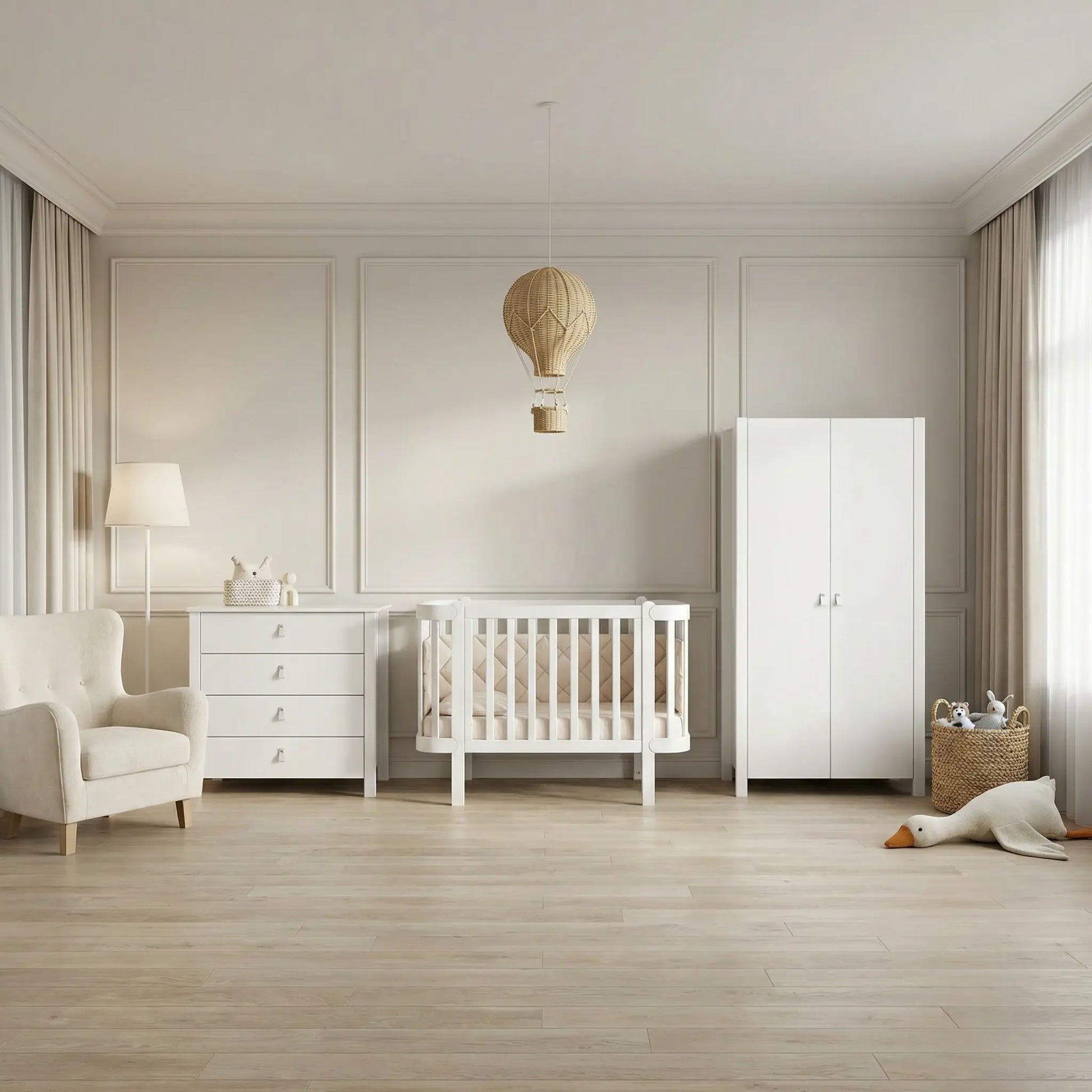Sie umfasst Babybetten, Kommoden und Schränke – alle mit modernem Design, Funktionalität und romantischen Akzenten des südfranzösischen Stils.