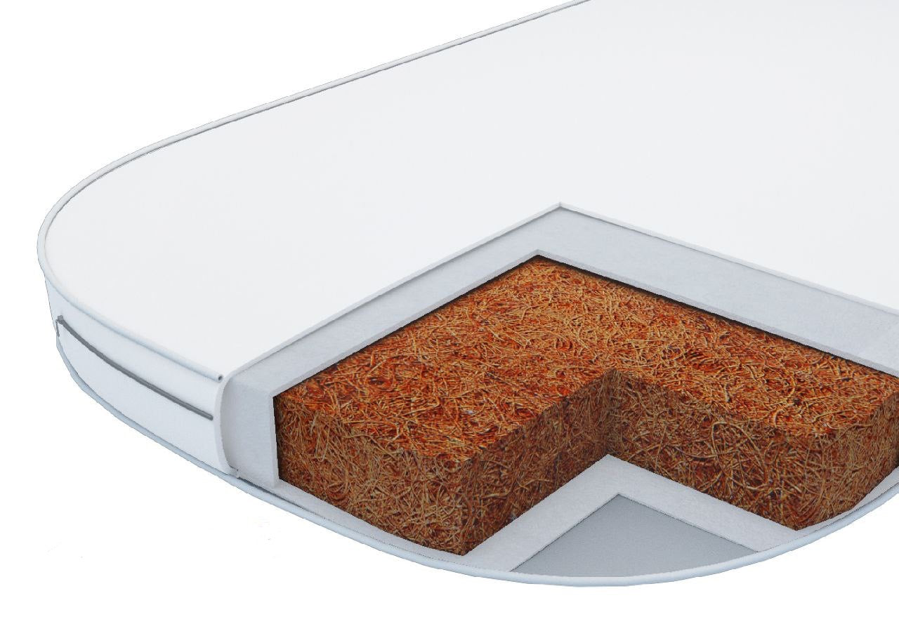 - Kokosfaser: 100% natürlicher Matratzenfüllstoff, hypoallergen. Hergestellt aus Kokosnussfasern, die mit natürlichem Latex getränkt sind. Das Verhältnis der Fasern bei der Verklebung beträgt 85% (Kokos) zu 15% (Latex). Durch den hohen Gehalt an Lignin in den Kokosfasern und zusätzliche Latexierung ist das Material elastisch, flexibel, stark, langlebig, feuchtigkeitsbeständig und verrottungsfest. Dank der pelzigen Struktur lässt die Kokosfaser Luft leicht durch, wodurch die Matratze gut belüftet wird und keine Gerüche absorbiert.